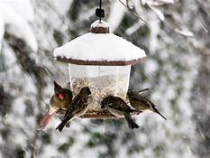 The chickadees are the boldest. They zip in and out, grabbing one seed at a time. Then they take it to a nearby branch to peck it open. When I come out onto the deck, they scold me, “Chicka-dee-dee-dee!” They are also the first to notice any changes in the feeding arrangements.