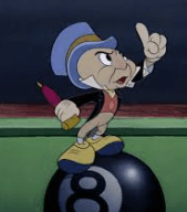Here is Jiminy Cricket, singing, “I’m no fool, no Sirree, I’m gonna live to be a hundred and three,” and telling us how not to be a fool on a bicycle. He uses chalk to draw the fool, a goofy looking boy with buck teeth. Then Jiminy animates the boy, who messes up on his bicycle in several ways. He rides with no hands. He doesn’t look where he’s going. He gets smashed flat by a car.