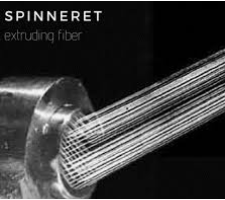 • The viscose solution is next turned into strings of fibers by forcing the liquid through a spinneret into an acid bath. The acid coagulates and solidifies the filaments resulting in regenerated cellulose filaments. Next, the filaments are ready to be spun into yarn.