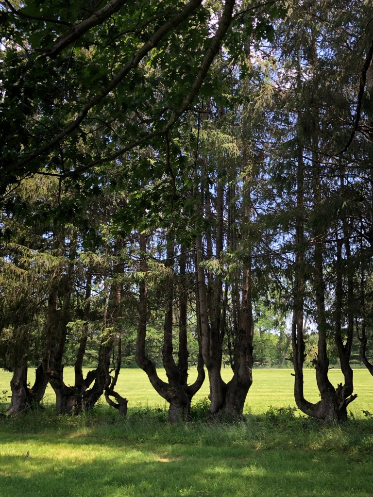 Following his directions, we managed to find it. After the peace pole, we spotted the overgrown labyrinth. The entrance is marked by a pretty, vine-covered gate. And yes, the bricks are buried and yes, it was so hard to discern the paths and turns that I eventually gave up.