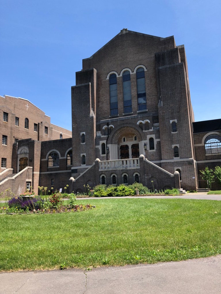 Our labyrinth hunt is taking us further afield. The Unification Theological Seminary (UTS)—unknown to me before this trip—is situated almost an hour away on the east side of the Hudson River, in Barrytown. The buildings are fairly impressive; the grounds are well-kept and beautiful.