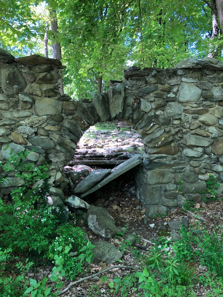 We skirted along the higher part of the stone wall which had a low archway built into it.