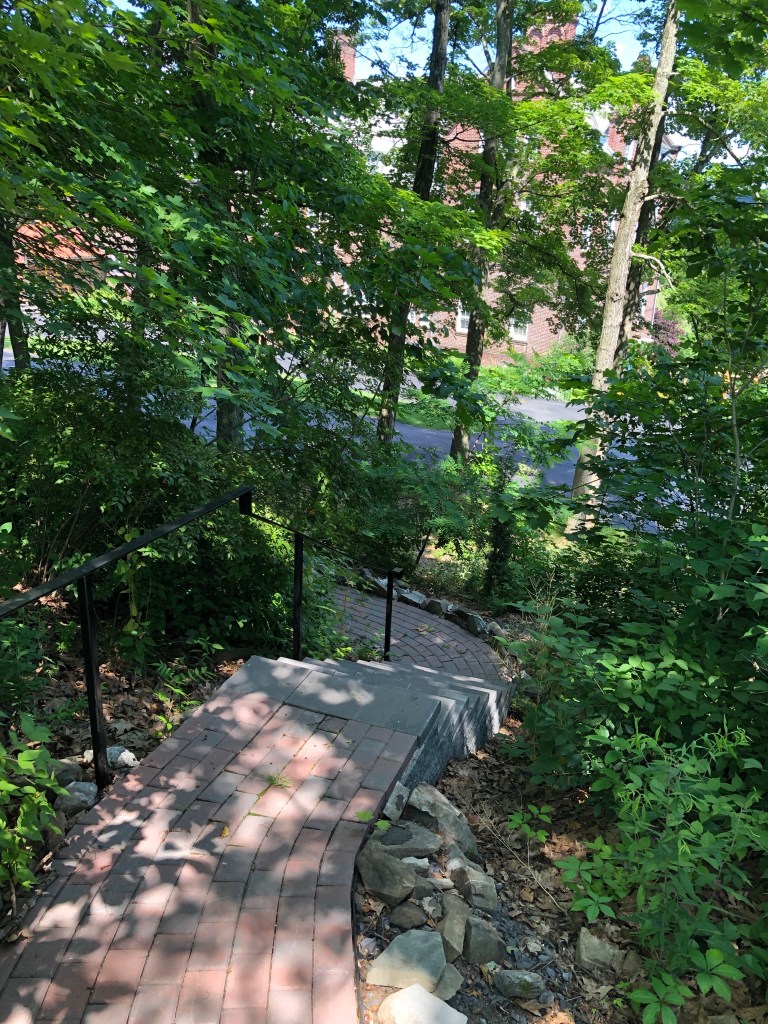 The labyrinth at Holy Cross Monastery in West Park, N.Y. is not listed on the Worldwide Labyrinth Locator site. I found out about it because one of my writer friends is a monk who lives there. “Oh,” he said after I mentioned my labyrinth quest in our writing workshop, “Holy Cross has a labyrinth.” So on a hot and humid afternoon, my husband and I hopped into the air-conditioned car and went exploring.