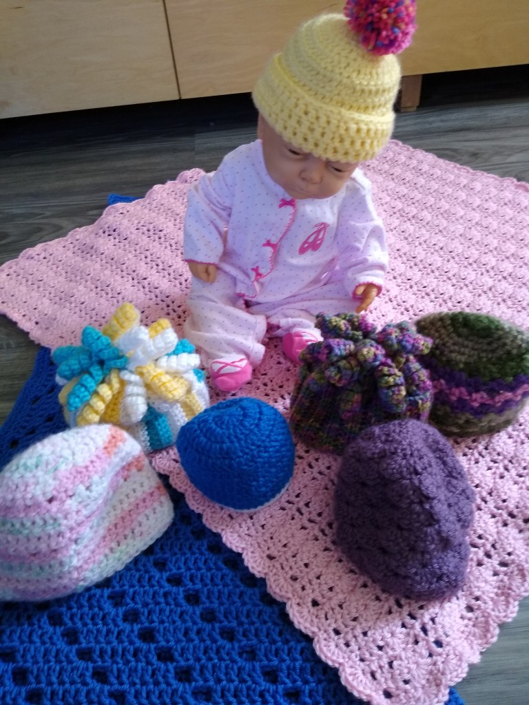 Crocheted hand sanitizer baggiesBasketsBaby hatsBeaded hamsas (These hamsas are my current crafting obsession. Each one is unique and contains the hamsa prayer of protection.)All my books will be available. I’ll be happy to sign one (or two, or more).